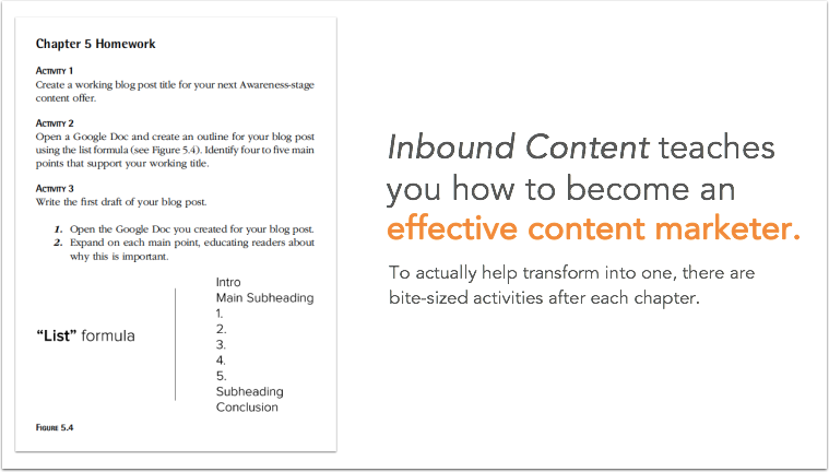 For example, before I published Inbound Content, I created HubSpot Academy’s Content Marketing Workbook, which is the supplemental practical resource for their Content Marketing Certification Course.